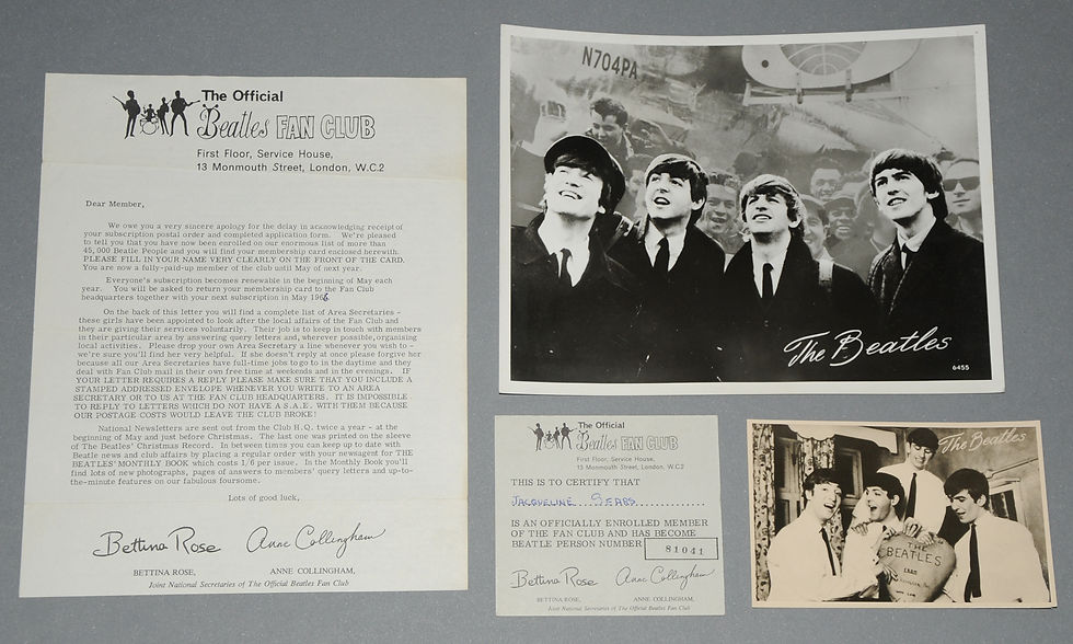 Original Beatles Fan Club Membership card UK 60's, Newsletter & Photos.